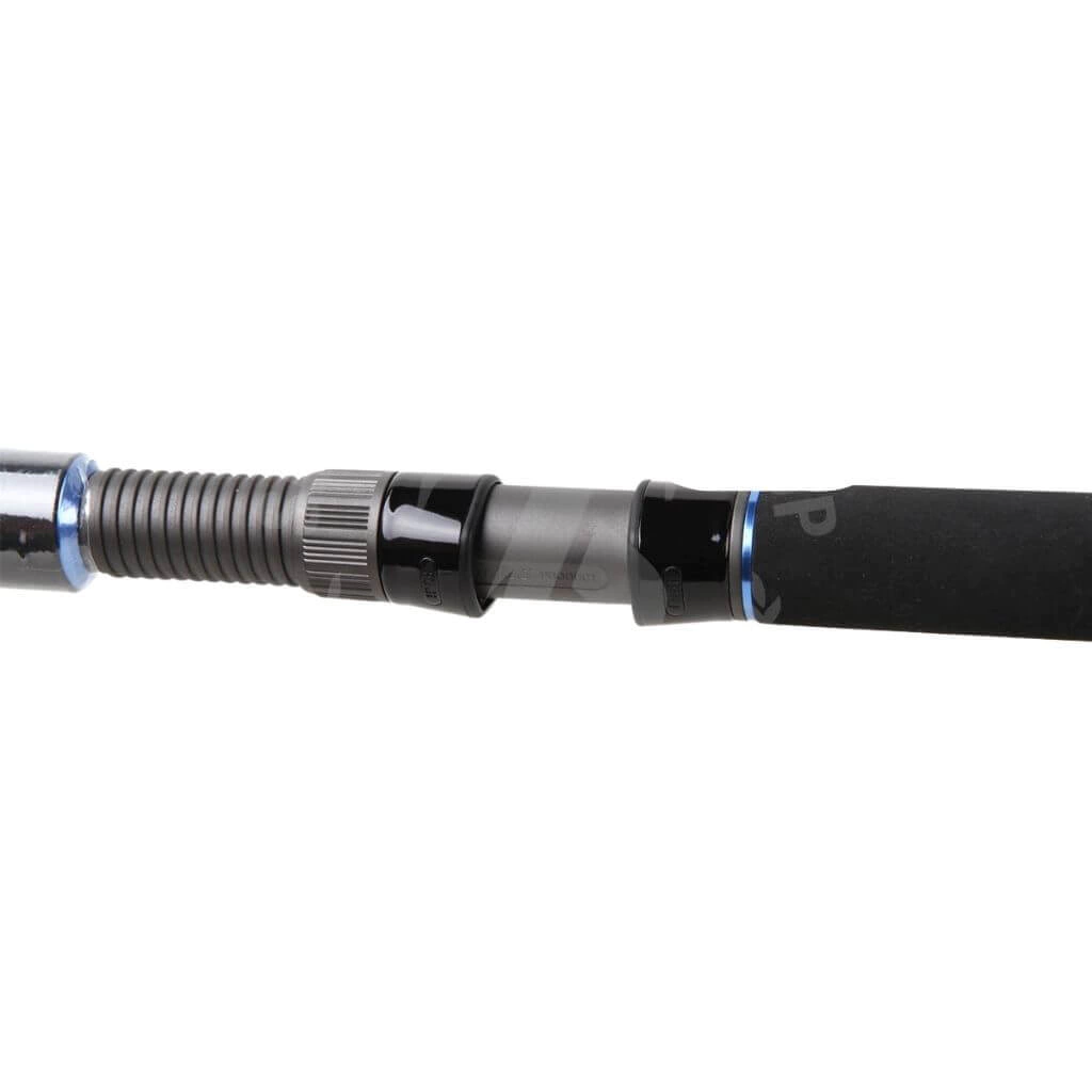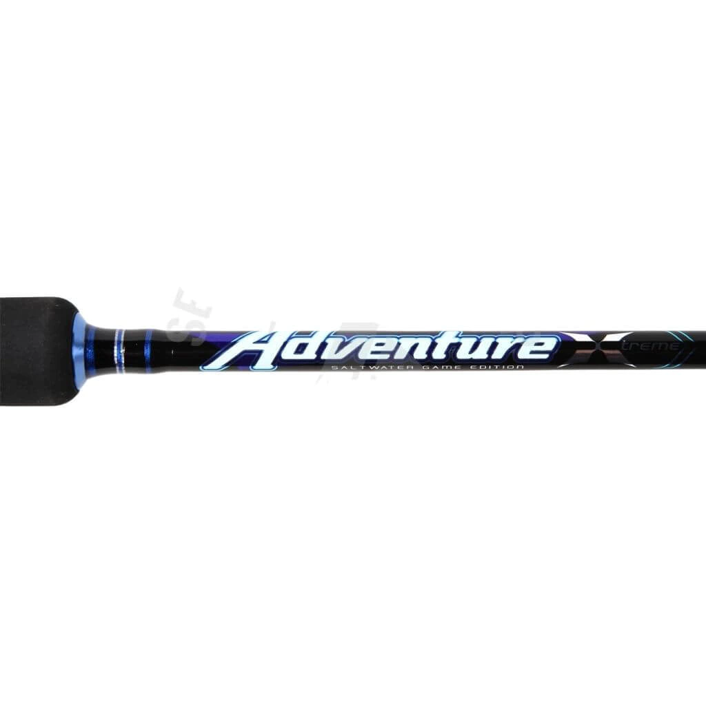 Caña Adventure marca Storm, esta caña de Spinning es ideal para la pesca de orilla de playa, su accion de lanzado te permitirá lanzar señuelos de hasta 125 gramos y sus 12 anillas tipo fuji te brindarán un mejor trabajo del cuerpo fabricado en grafito. Sin duda alguna una de las mejores cañas de spinning en el mercado.