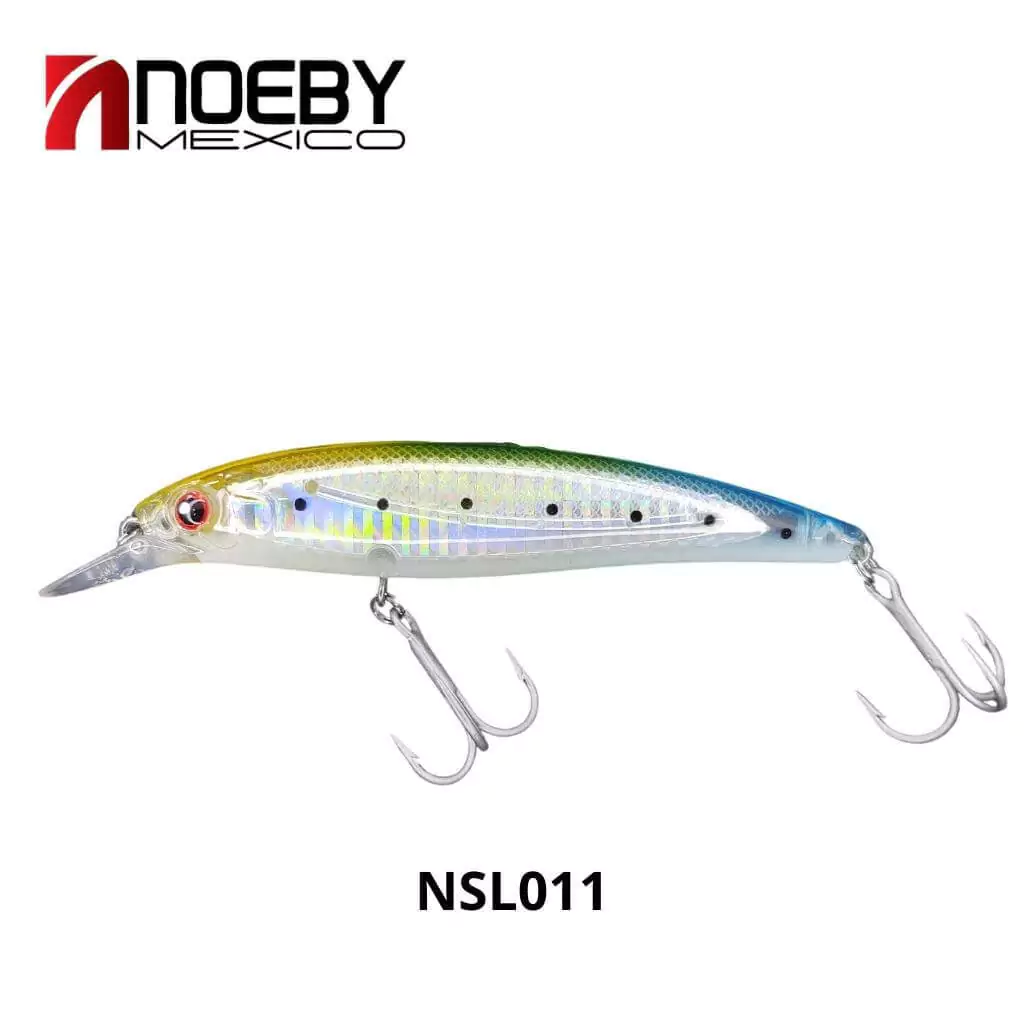Señuelo NOEBY de hundimiento, cuenta con una paleta que le permite sumergirse hasta 1.5 metros mientras nada, su variedad de colores los vuelve muy atractivos para los depredadores, puedes usarlos desde la orilla, embarcación o em rocas.